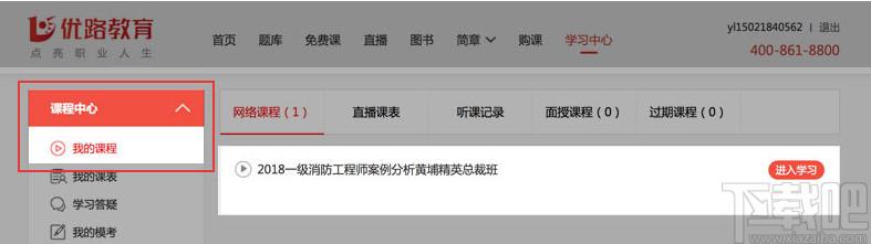 7、完成课程订购后可以点击我的课程进入课程管理页面进行课程学习